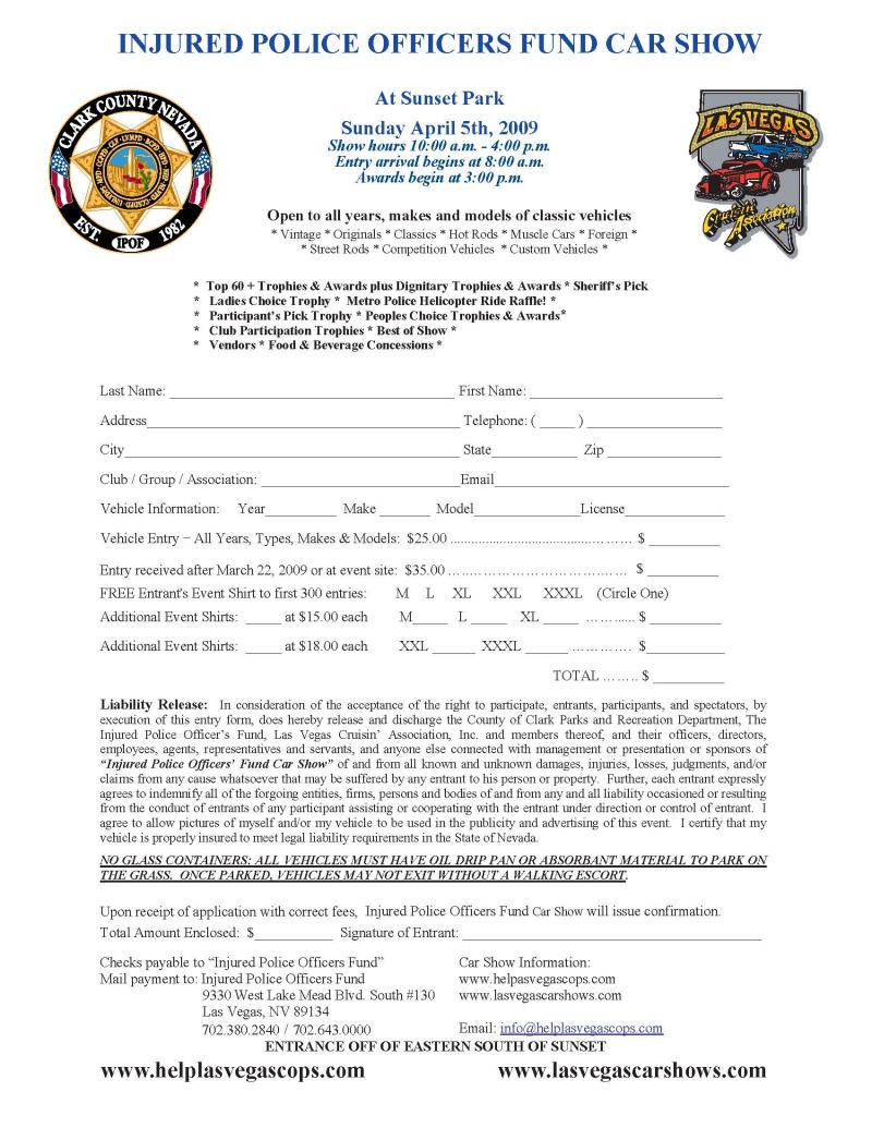 April 5 | *Injured Police Officer Car Show (CS) | $25/Car | Roy Hoernke | Flyer Entry Frm |