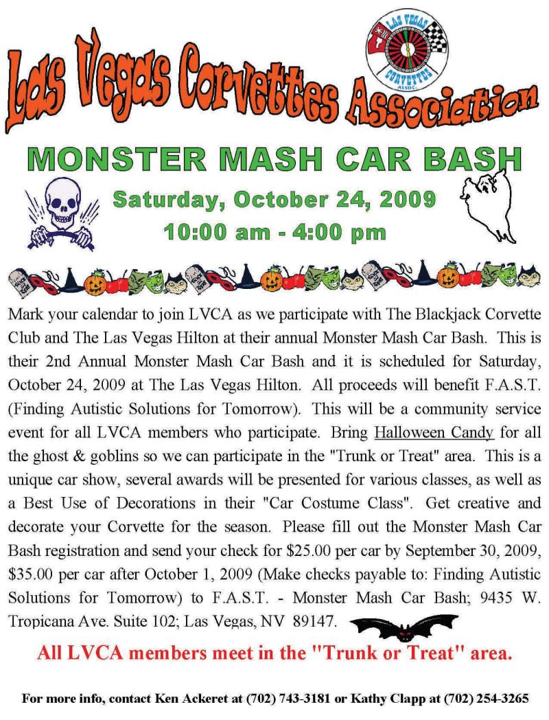 October 24 | *Monster Mash Car Bash (CS) - Las Vegas Hilton | $25/car | Ken Ackeret and Kathy Clapp | Flyer1 Flyer2 Flyer3 |