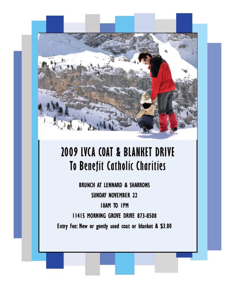 November 22 | *Coat and Blanket Drive (CS) | $3/person+coat and/or blanket | Lennard