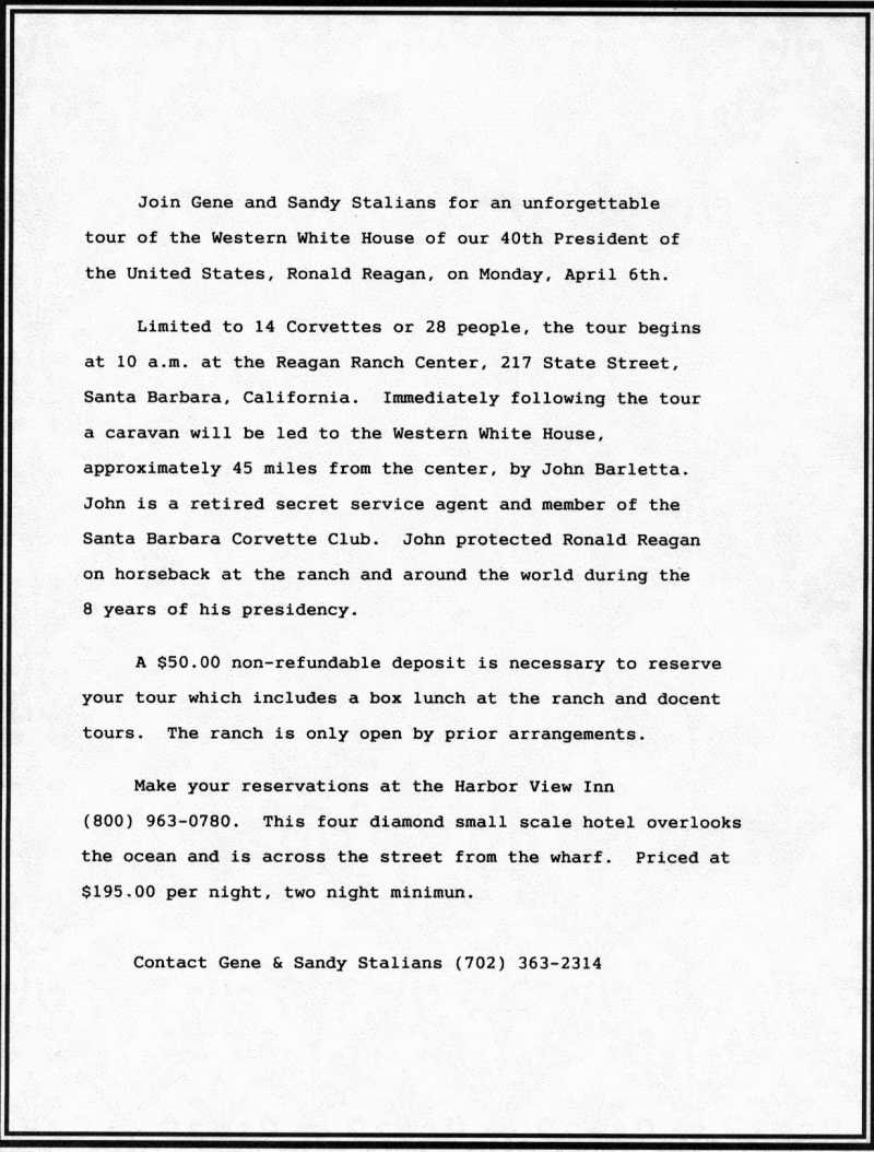 April 6 | Drive to and tour of the Reagan Ranch | $50+/person | Gene Stalians | Flyer |
