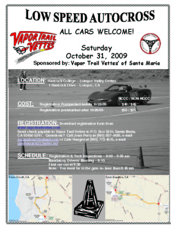Trail Vettes NCCC Sanctioned Autocross Hancock College ~ Lompoc Valley Center | $40/Driver | Joan