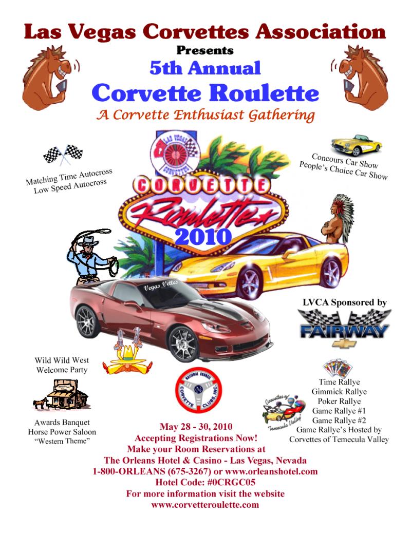 May 28 - 30 | *Corvette Roulette (CS) - Orleans Hotel & Casino | Registration | Bonnie Corbett | Flyer |