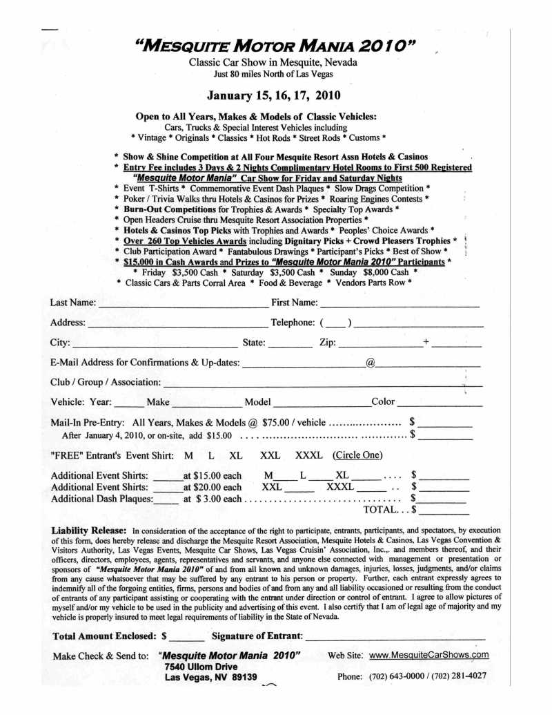 Vegas Cruisin' Assn - Mesquite Motor Mania | $75/car $11.18/night | Bill McCord/Gary Lowers | Flyer/Form Website |