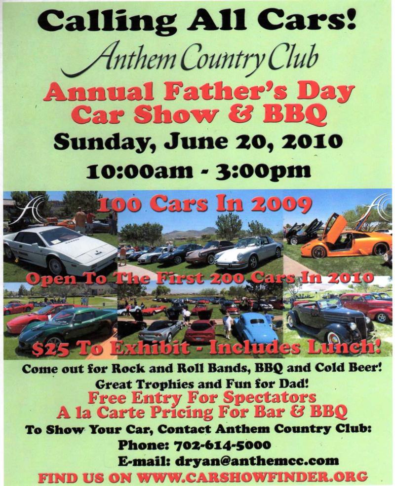 June 20 | Anthem Country Club - Car Show & BBQ | $25/car | Howard Ickes | Flyer |