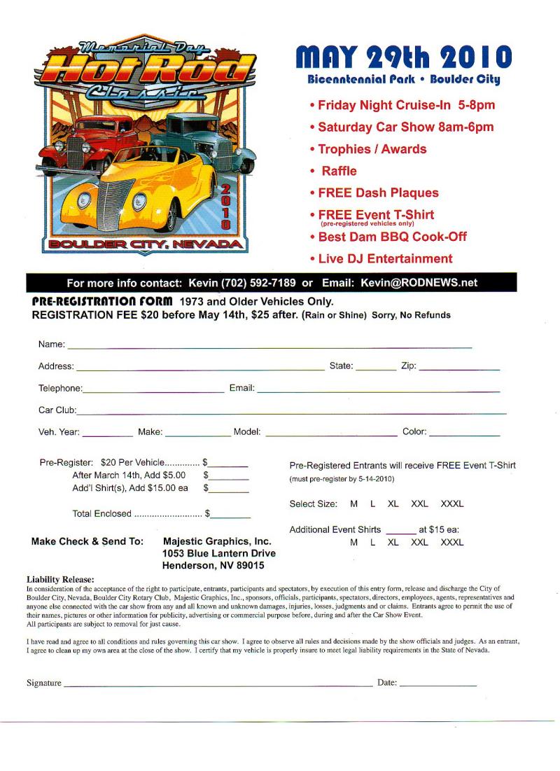 May 29 | Memorial Day Hot Rod Classic (pre 74) - Boulder City | Reg Form | ||