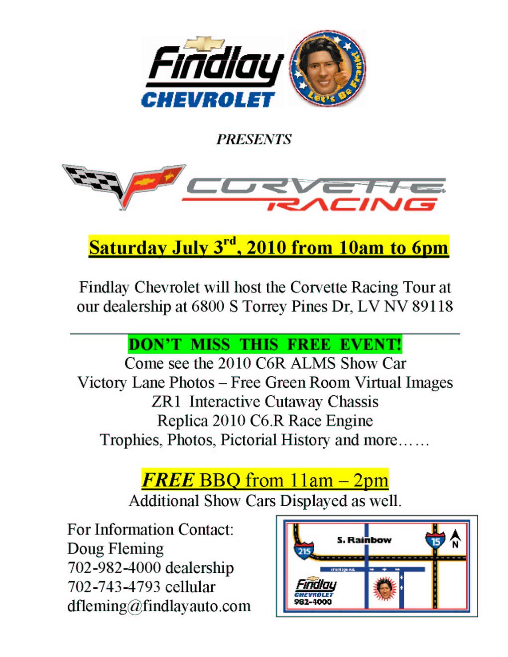 July 3 | Corvette Racing Tour - Findlay Chevrolet - 10 AM to 6 PM | FREE | Doug Fleming | Flyer Letter |