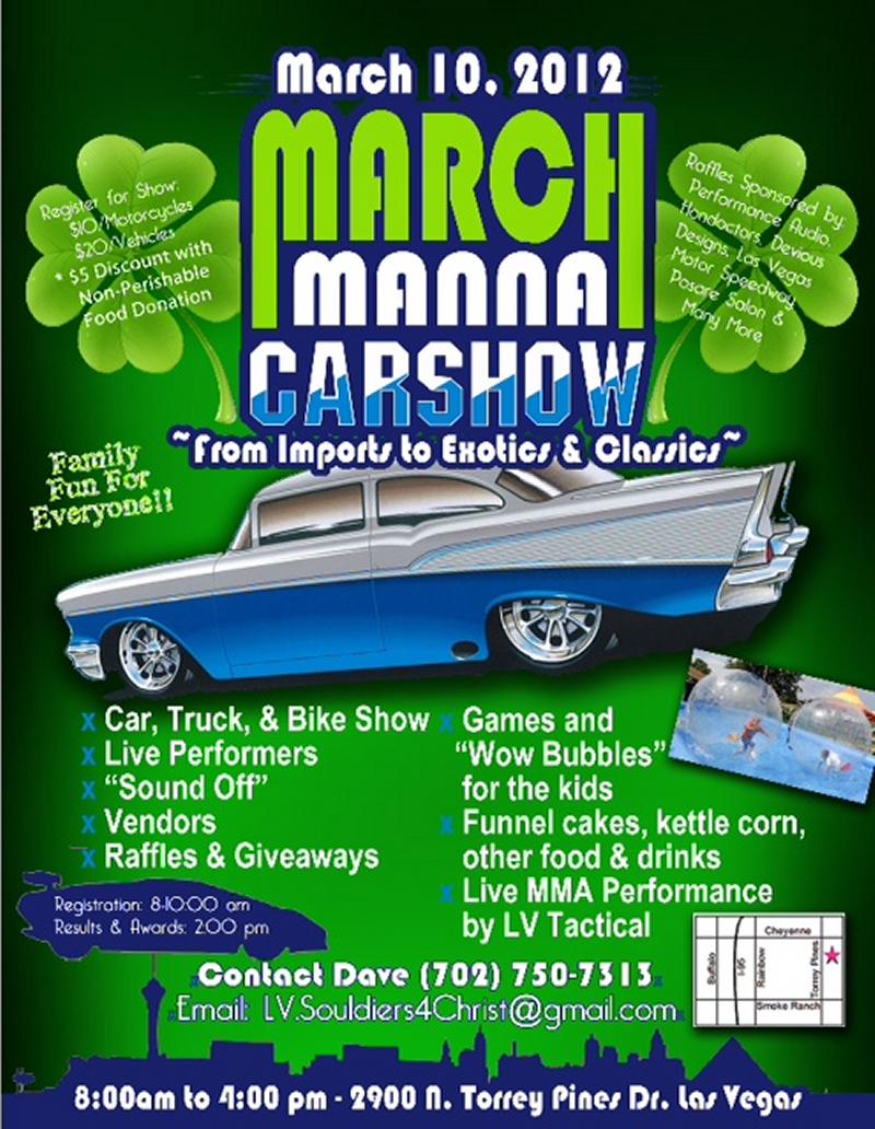 March 10 | March Manna Car Show | $20/car | Flyer | |