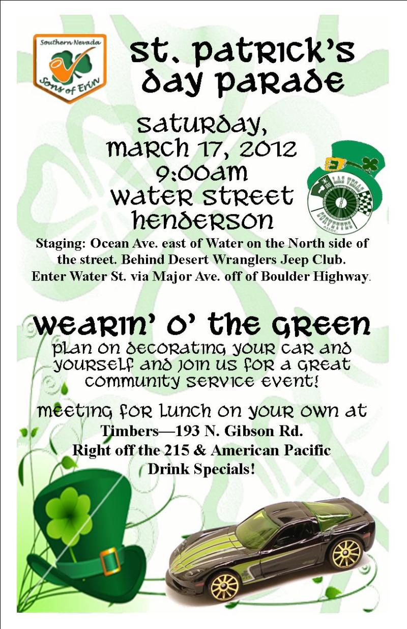 March 17 | *St. Patricks Day Parade (CS) - Henderson | FREE | Sherrie Wood | Flyer |