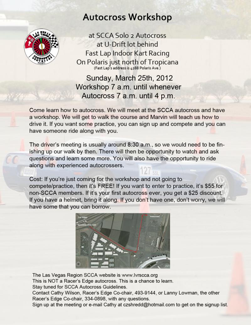 March 25 | *Autocross Workshop at Fast Lap Indoor Kart Racing - 4288 Polaris Avenue, Las Vegas, NV | Free | Cathy Wilson | Flyer Guidelines |