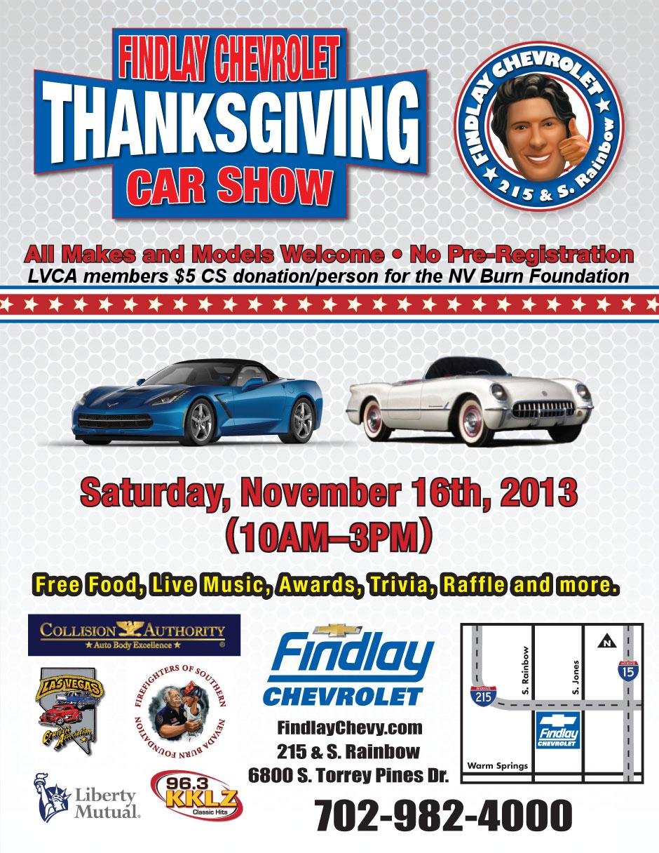 November 16 | Findlay Chevrolet Thanksgiving Car Show (CS) Community Service is for the NV Burn Foundation |