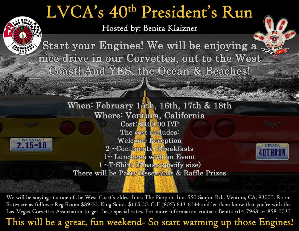 February 15 - 18 | President's Run - Ventura CA | $100/pp + Lodging & gas | Benita Klaizner | |