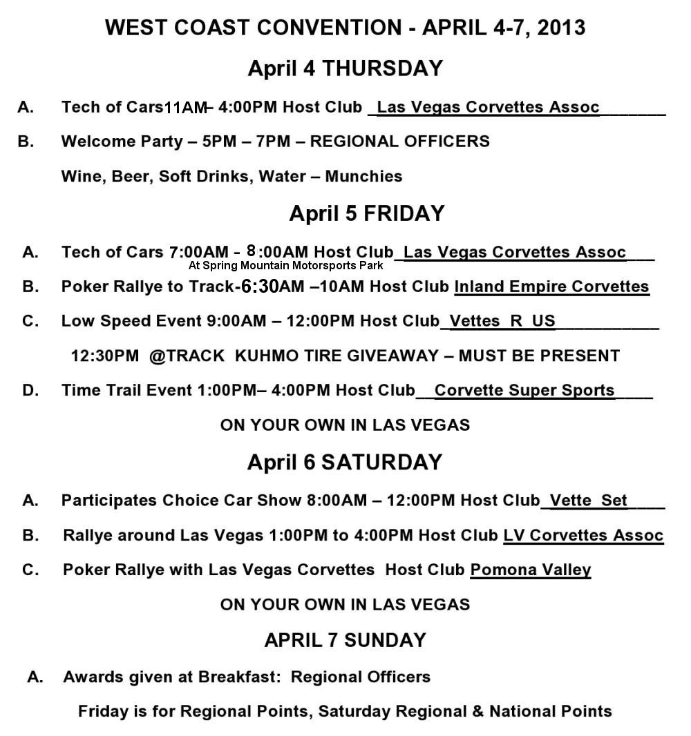 April 18 - 20 | Gambler's Classic - Riverside Resort Hotel and Casino - Lauughlin NV - Corvettes of Bakersfield | $180/couple | patti.coffman@yahoo.com | |
