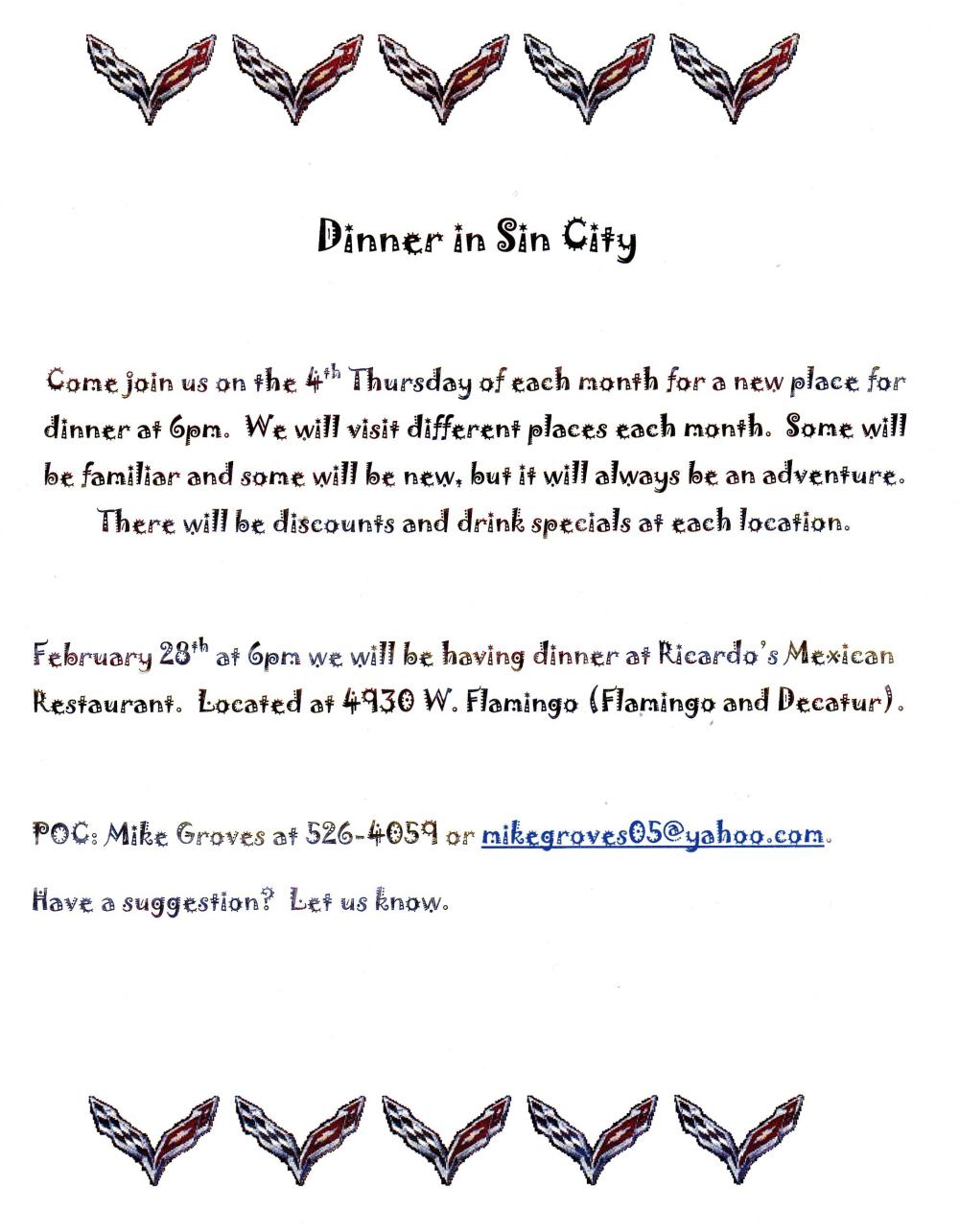 February 28 | Sin City Supper - Ricardo's 4930 W Flamingo | Mike Groves | Flyer | |