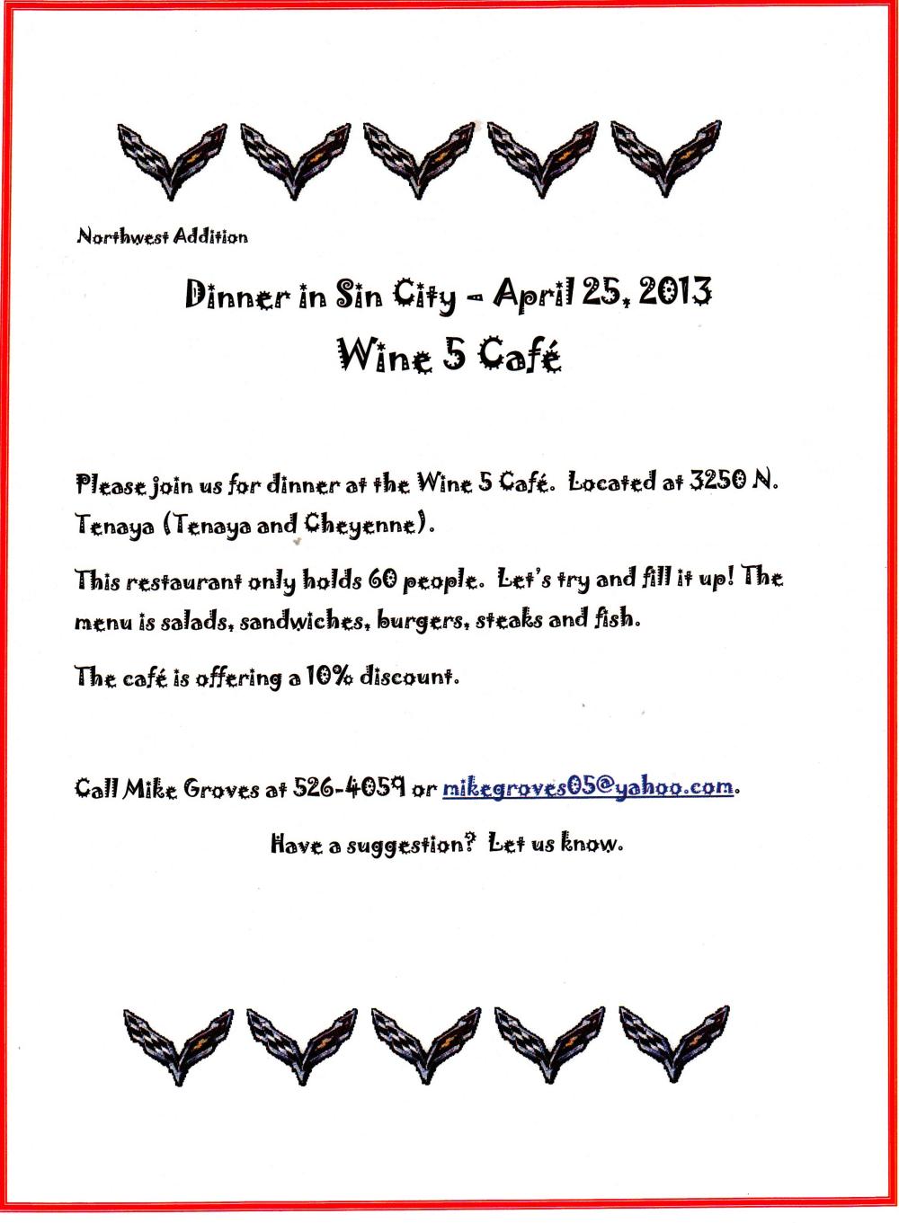 April 25 | Sin City Supper - Wine 5 Cafe @ 6PM | Mike Groves | Flyer | |