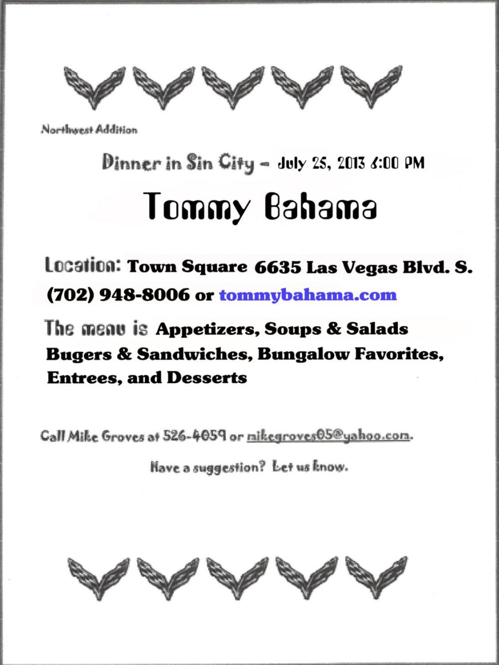 July 25 | Sin City Supper - Tommy Bahama - 6:00 PM | Mike Groves | Flyer | |