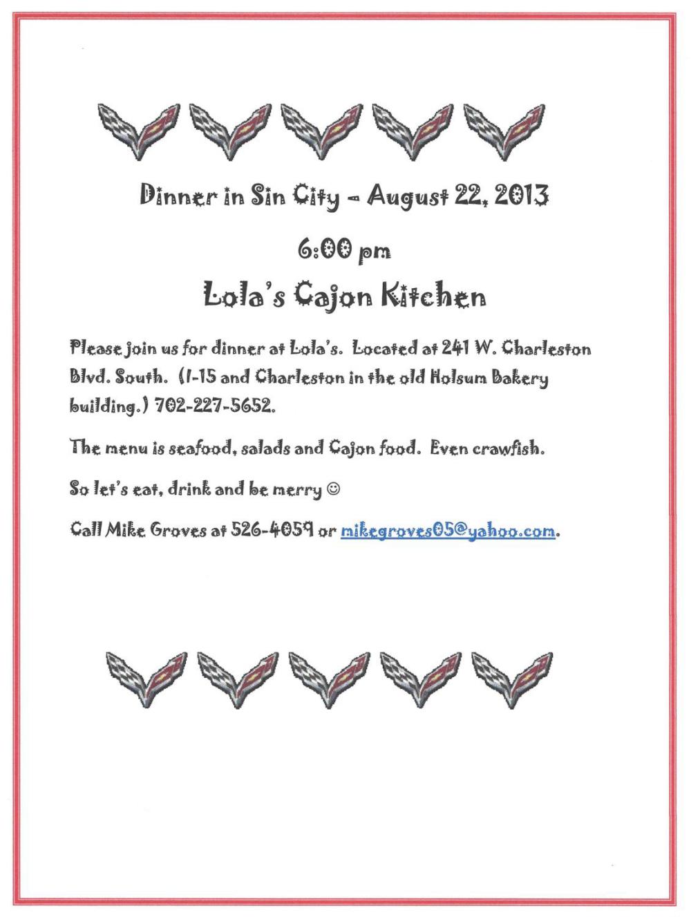 August 22 | Sin City Supper - Lola's Cajon Kitchen - 6 PM | Mike Groves | Flyer | |