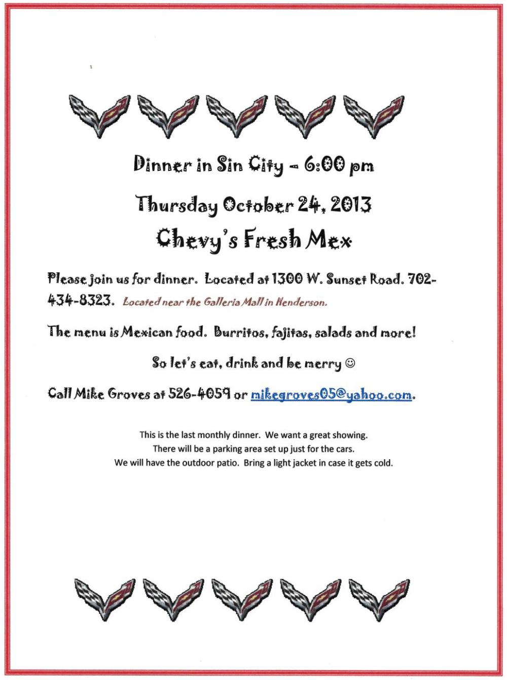 October 24 | Dinner in Sin City - Chevy's Fresh Mex | Menu | Mike Groves | Flyer |