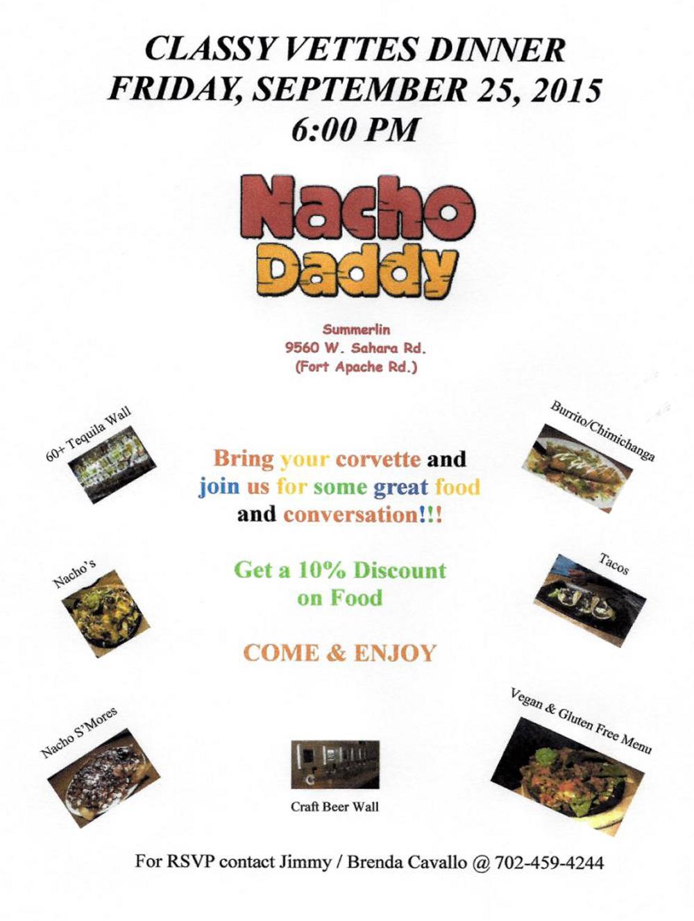 September 25 | 'Vettes & Vittles' - Nacho Daddy's | Jimmy & Brenda Cavallo | Flyer | |