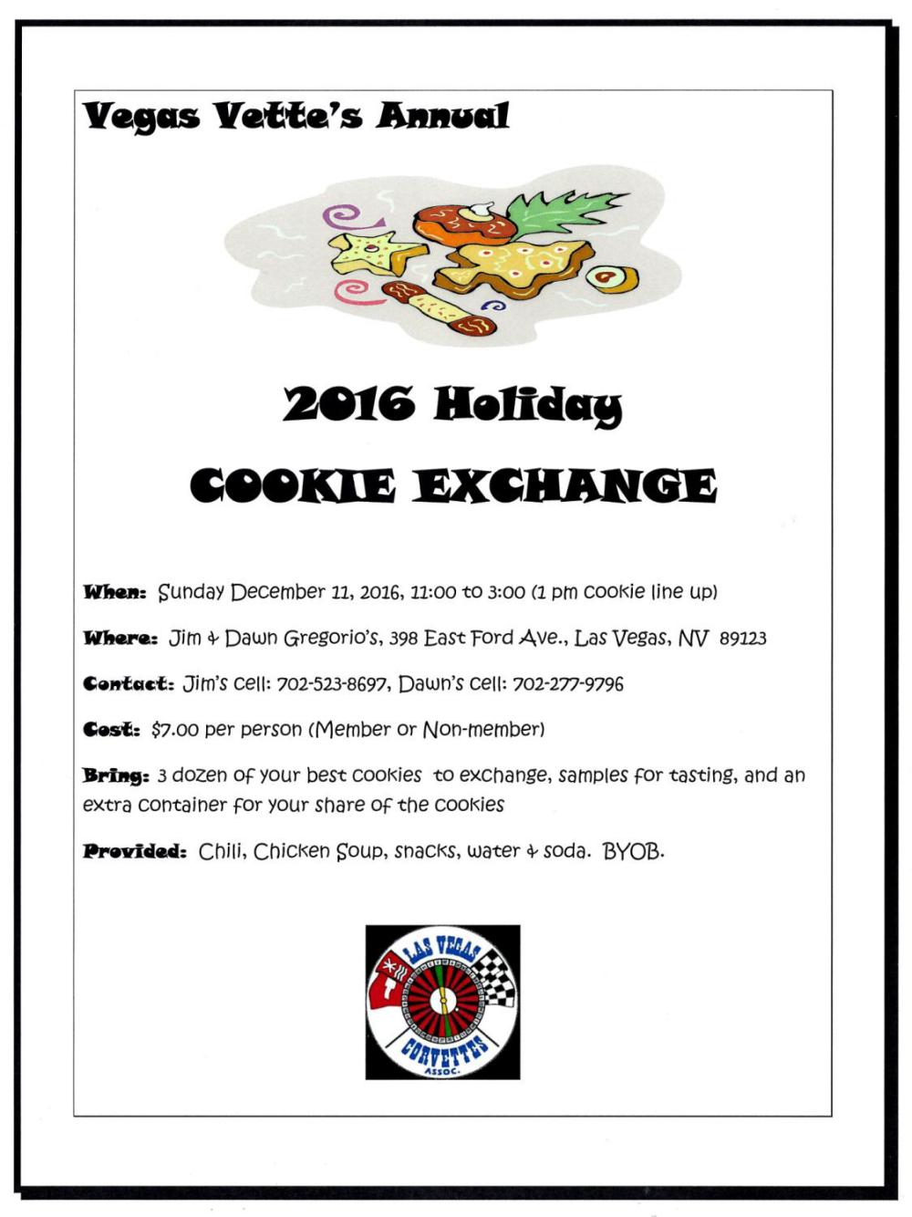 December 11 | Cookie Exchange | $7/pp | Jim & Dawn Gregorio | Flyer |