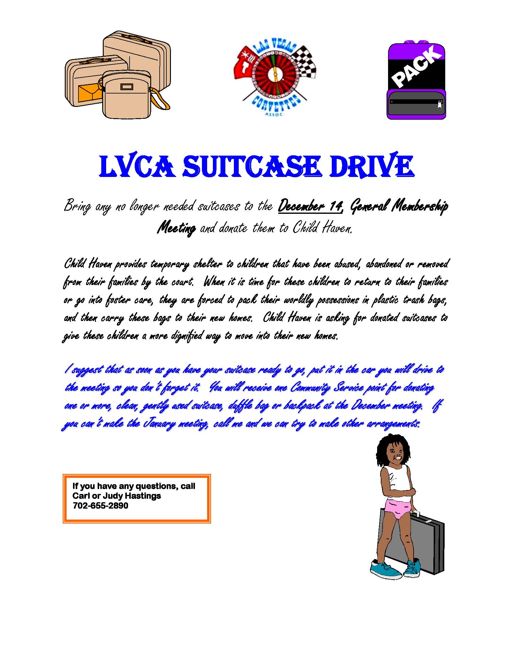 Meeting Suitcase drive for Child Haven (CS) |