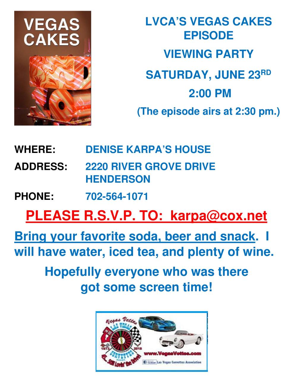 June 23 | Vegas Cakes Viewing Party at Denise Karpa's | Free | Denise Karpa | Flyer |