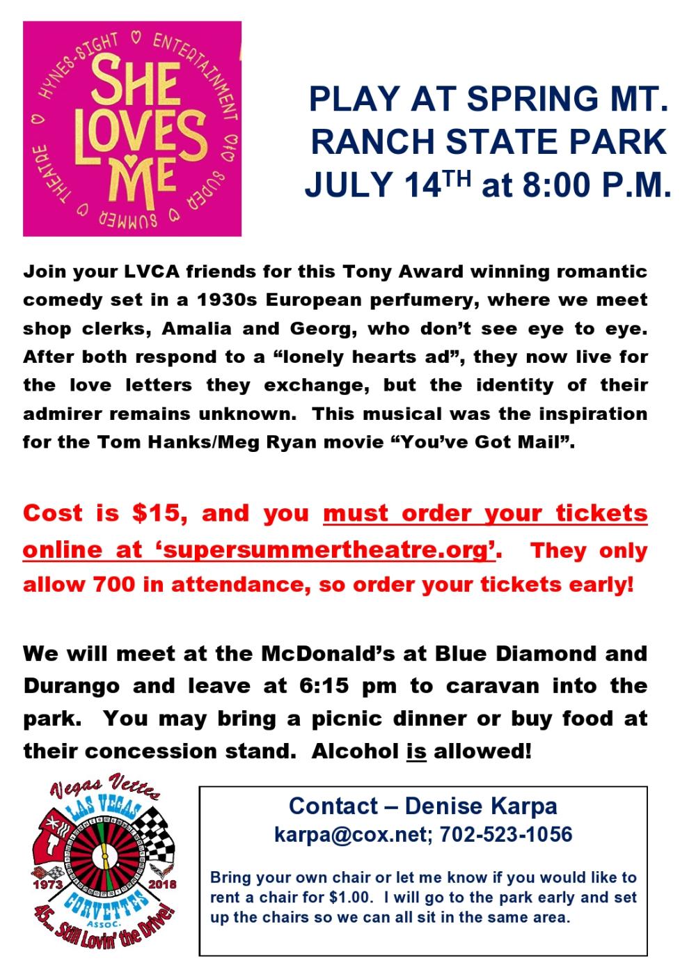 July 14 | Super Summer Theater @ Spring Mt Ranch | $15/person | Denise Karpa | Flyer Tickets Online |