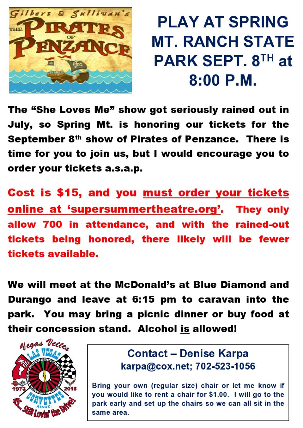 September 8 | Pirates of Penzance @ Spring Mt Ranch | $15/person | Denise Karpa | Flyer Tickets Online |