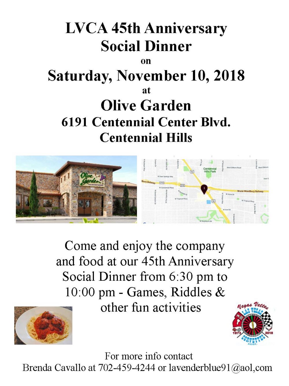 November 10 | LVCA Dinner Social - Olive Garden @ 6:30PM | Brenda Cavallo and Holley Holran | Flyer | |