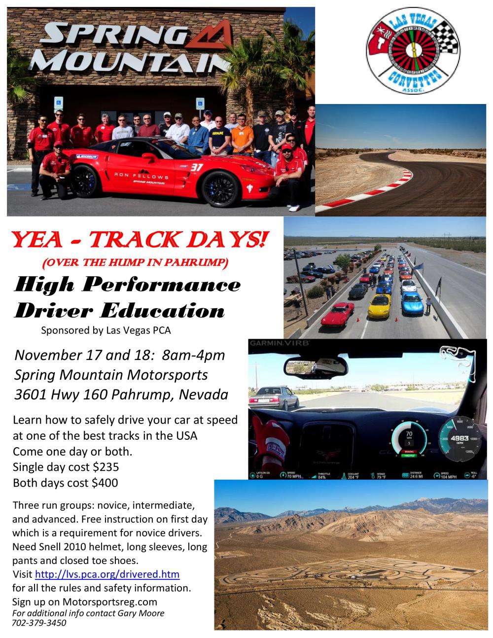 November 17 -18 | High Performance Driver Education @ Spring Mtn with the Porsche Club | $235/1-day $400/2-days |