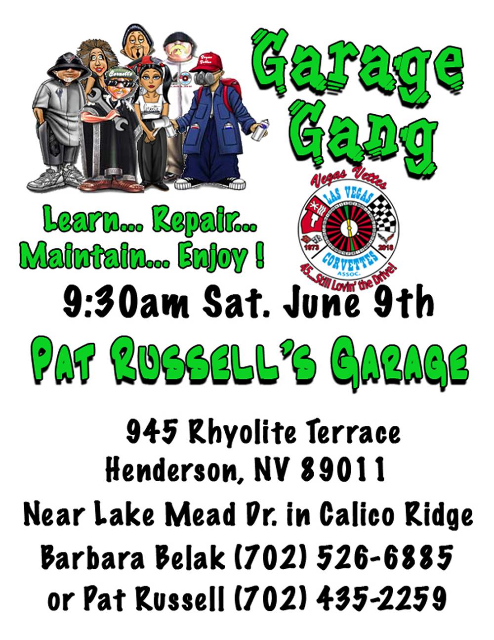 June 9 | Garage Gang at Pat Russell's after Cars & Coffee | Free | Barbara Belak/Pat Russell | Flyer Event Pictures |
