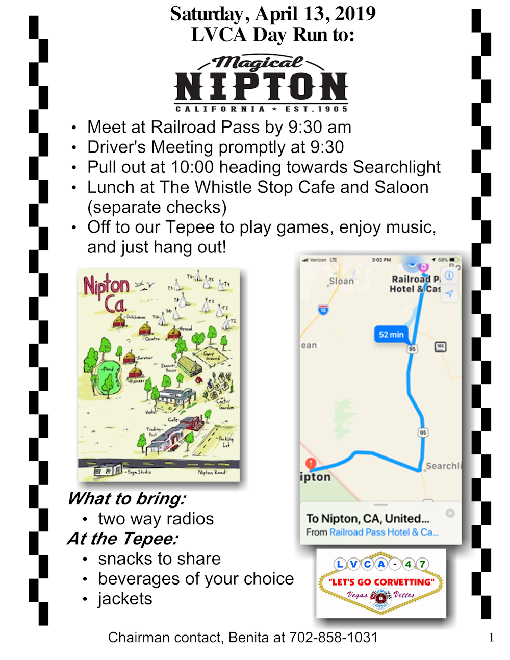 April 13 | Monthly Road Run - Nipton | Benita Klaizner | Flyer Menu | |
