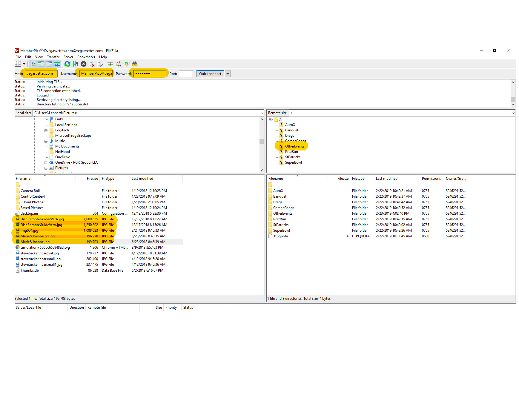 9. On your local site select the pictures that you want to transfer. PLEASE